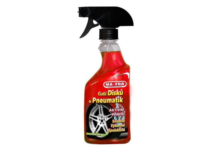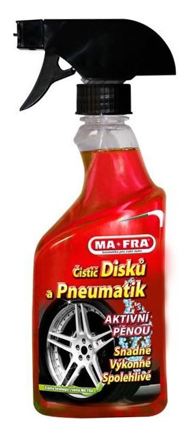 Díky svému složení s aktivní pěnou odstraňuje přípravek snadno a rychle jakýkoliv druh nečistot bez použití houby nebo mycí rukavice. Přípravek je zárukou důkladného vyčištění a obnovení zářivého lesku disků i původní barvy pneumatik. Jeho jedinečné složení také připraví povrch pneumatiky k následnému použití leštidel na gumy Mafra.