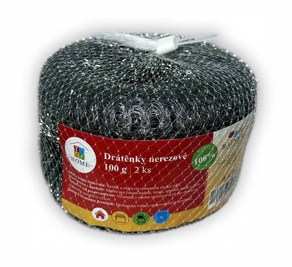 Drátěnka Maxi nerez šetří vaše ruce a nerezaví. Je vhodná k odstranění odolných skvrn, připálených a silně znečištěných míst na hrncích, pánvích a talířích. 100g zaručí plnou dlaň drátěnky. Drátěnka je vyplněna i uprostřed pro snažší práci a méně dřiny.
