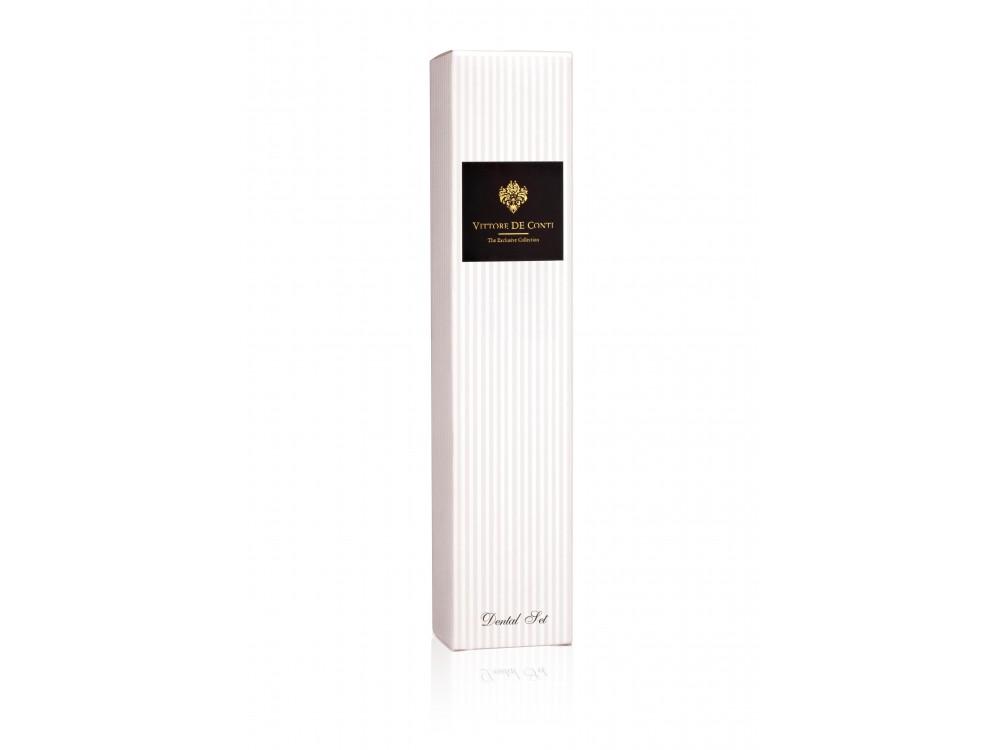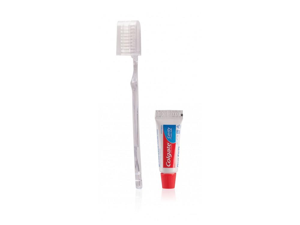 Obsah krabičky: zubní kartáček, zubní pasta