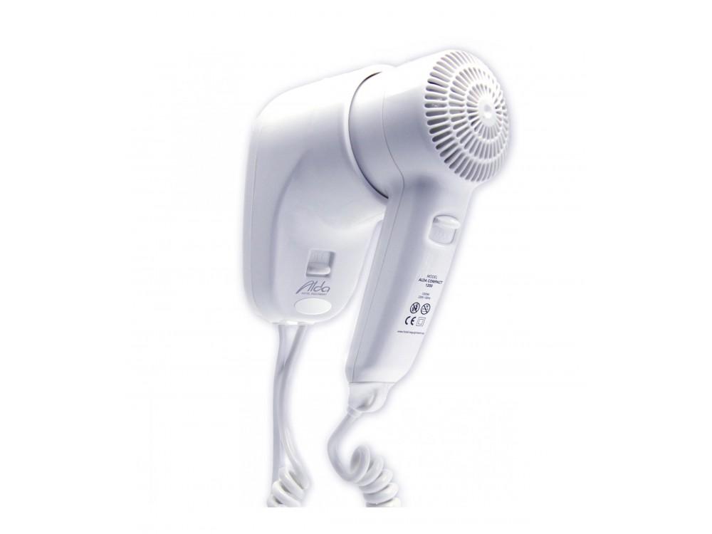 Fén ALDA COMPACT 1.200 v bílé barvě patří mezi nejoblíbenější řady hotelových fénů. Vyniká velmi hezkým designem, skvělou ceno a výbornými parametry. To vše dělá z pistolového fénu ALDA COMPACT 1.200 velmi žádaný produkt. Fén je opatřen kabelem se zástrčkou nebo ho lze zapojit přímo na pevný přívod. Má dvě rychlosti a centrální vypínač.