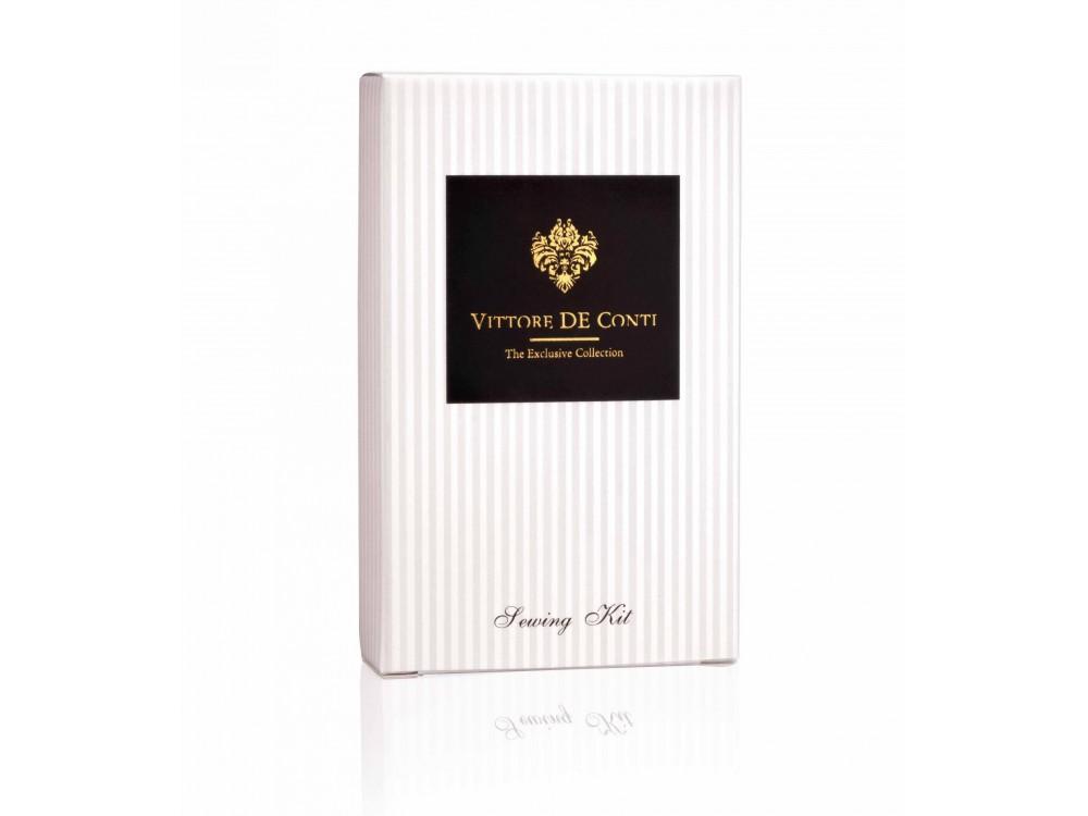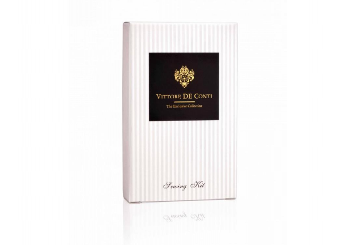 Obsah krabičky: jehla, spínací špendlík, 2 knoflíky, 6 nití