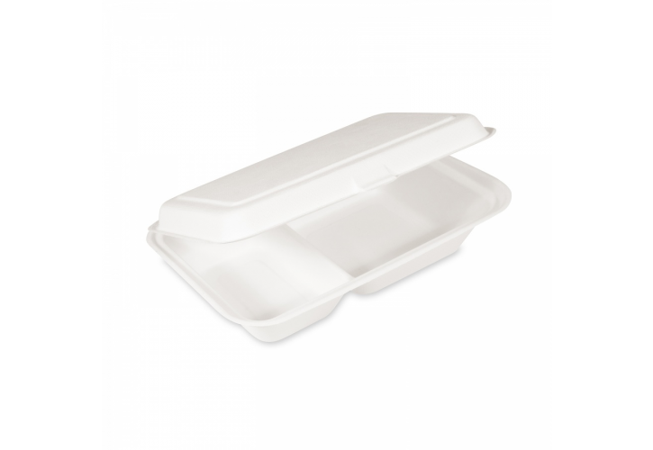Rozložitelný - kompostovatelný menu box z cukrové třtiny. Je vhodný pro hotely, catering, restaurace, svatby, festivaly, párty, narozeniny, firemní akce, večírky atd. Obaly z cukrové třtiny do sebe vstřebávají vlhkost, tudíž jídlo v krabičkách zůstává stále čerstvé.