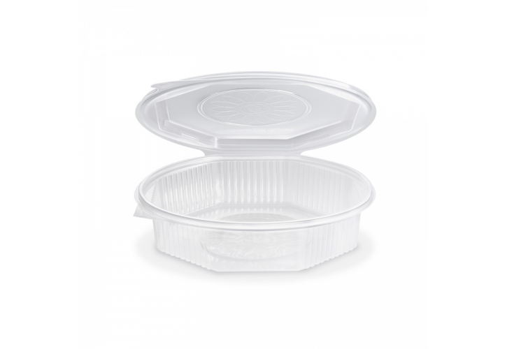 Miska s integrovaným víčkem osmiboká pro hotová jídla 1200 ml jednodílná. Misky jsou vynikajícím řešením pro kuchyně a gastroprovozy a rozvozy jídel určené k distribuci a odnosu hotových jídel domů, jak pro svoji praktičnost, hygienu i ekologickou stránku. Misky jsou vyrobeny z recyklovatelného plastu PP.