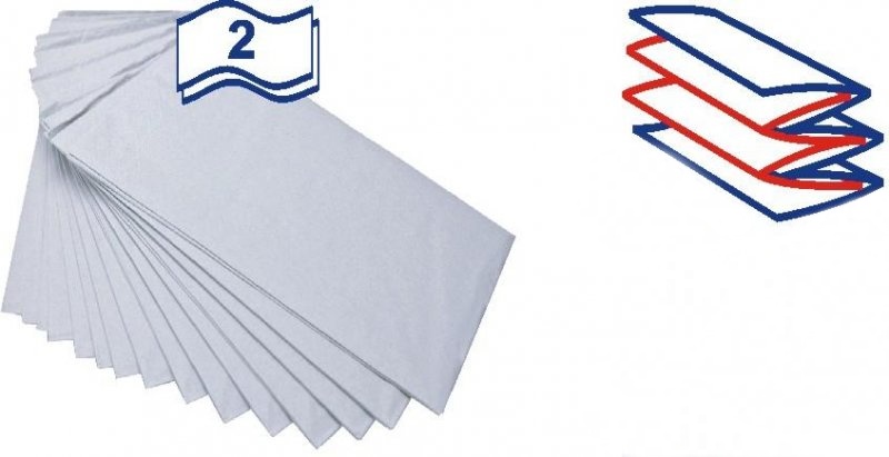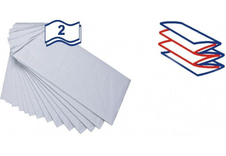 Papírové ručníky ZZ skládané 2vr., 100% celulóza. Barva bílá. Rozměr 16,5x21 cm. Karton obsahuje 40 balíčků po 225ks. Cena za balení. Váha 1 karton = 11,5 kg.