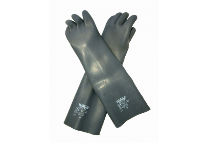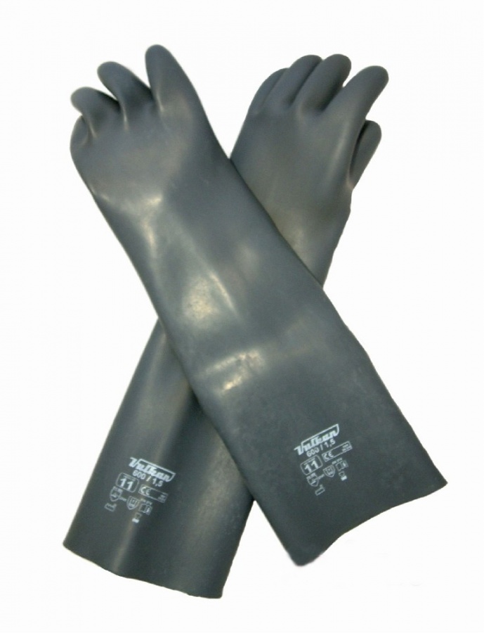Použití: technické rukavice VULKAN 60cm, síla 1,5mm chrání před kapalinami a chemikáliemi, jako jsou kyseliny, ketony (aceton) a louhy, pryžové rukavice jsou také vhodné pro otryskávání (pískování) výrobků pro tryskače, průmyslové čištění, pro mechanické a montážní práce, v laboratořích a zemědělství, barva černá, velikosti 11.