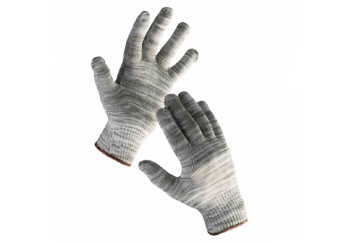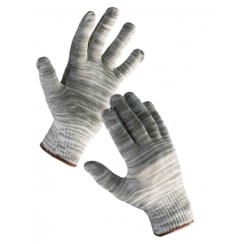 Pletené bezešvé rukavice ze směsi nylon/bavlna, pružná manžeta.