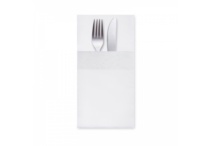 Ubrousky CutleryStar 3vrstvé bílé ve 100% celulóze. Kapsa na příbor v bílé barvě. Rozměr 40 x 40 cm složený 1/8.