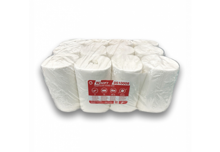 Papírové ručníky na roli 2vr., 100% celulóza s perforací. Barva bílá. Balení obsahuje 12 rolí. Cena za roli. Návin 60m. Váha 400g. S dutinkou nebo bez dutinky.