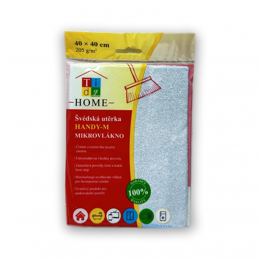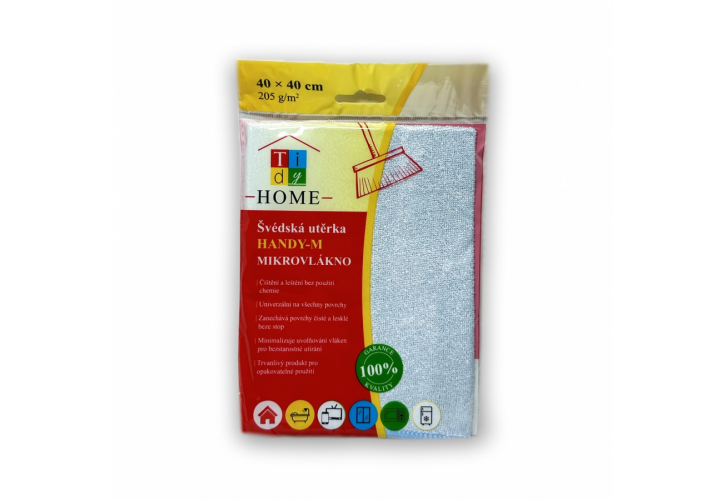 Švédská utěrka z mikrovlákna o rozměru 40x40 cm 205g/m² je ekologická utěrka na veškeré povrchy, která čistí a leští i bez použití chemických prostředků. Má dlouhou životnost. Nepoškozuje povrchy a nepouští vlákna. Utěrka nezanechává šmouhy a nečistoty. Disponuje vysokou savostí a absorbcí nečistot. Můžete prát do 60 °C bez aviváže. Použítí je možné suchou i namočenou utěrkou. Švédská utěrka je složena z 80% polyesteru a 20% polyamidu.