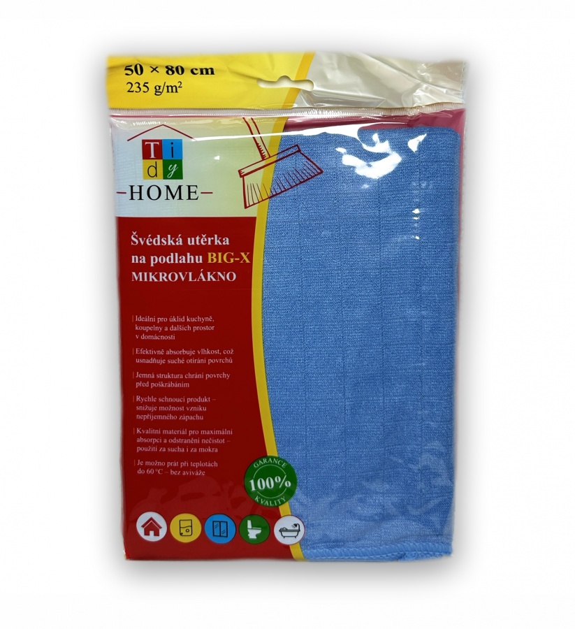 Švédská utěrka-hadr na podlahu z mikrovlákna o rozměru 50x80 cm 235g/m² je ekologická utěrka na podlahu, okna, povrchy, koupelny, která čistí a leští i bez použití chemických prostředků. Má dlouhou životnost. Nepoškozuje povrchy a nepouští vlákna. Mikrohadr nezanechává šmouhy a nečistoty. Disponuje vysokou savostí a absorbcí nečistot. Můžete prát do 60 °C bez aviváže. Hadr který je složen z 80% polyesteru a 20% polyamidu.